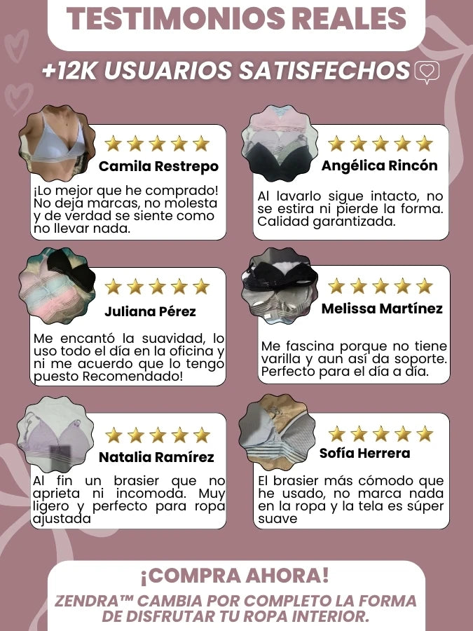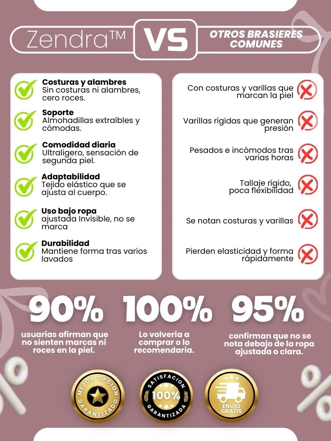 No, Zendra™ está diseñado sin varillas ni costuras, lo que garantiza suavidad total y cero marcas en la piel, incluso después de usarlo todo el día.